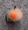 Sucker Spawn ~Bling~- Sucker spawn tied with Microbling yarn and a red bead just bellow the eye of the hook. This fly is another version of the sucker spawn tied above and just to give them something different to eat. It has proven itself time and time again that this fly should be in your box. The sparkle in the yarn get's their attention and the bead is an added bonus. Chartreuse and egg colors have been the favorite for the big Browns and steelhead. In the spring the steelies will move six feet to nail these flies. Tied on Raven Specimen wide gape #12 red-bleeding hook. |