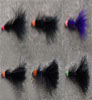 "The Woolly Bugger"....You can't go wrong with this fly. These also habe the added shiny brass bead head. These suggest a leech or larva type trout foods in the river system, or just something that might be alive and edible. Available in Black, Brown, Olive, Pink and White. All flies are quality tied on Daiichi x-strong streamer hooks, and are available in singles, by the dozen, or assorted dozen. |