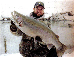 proudly displaying a late winter giant steelhead